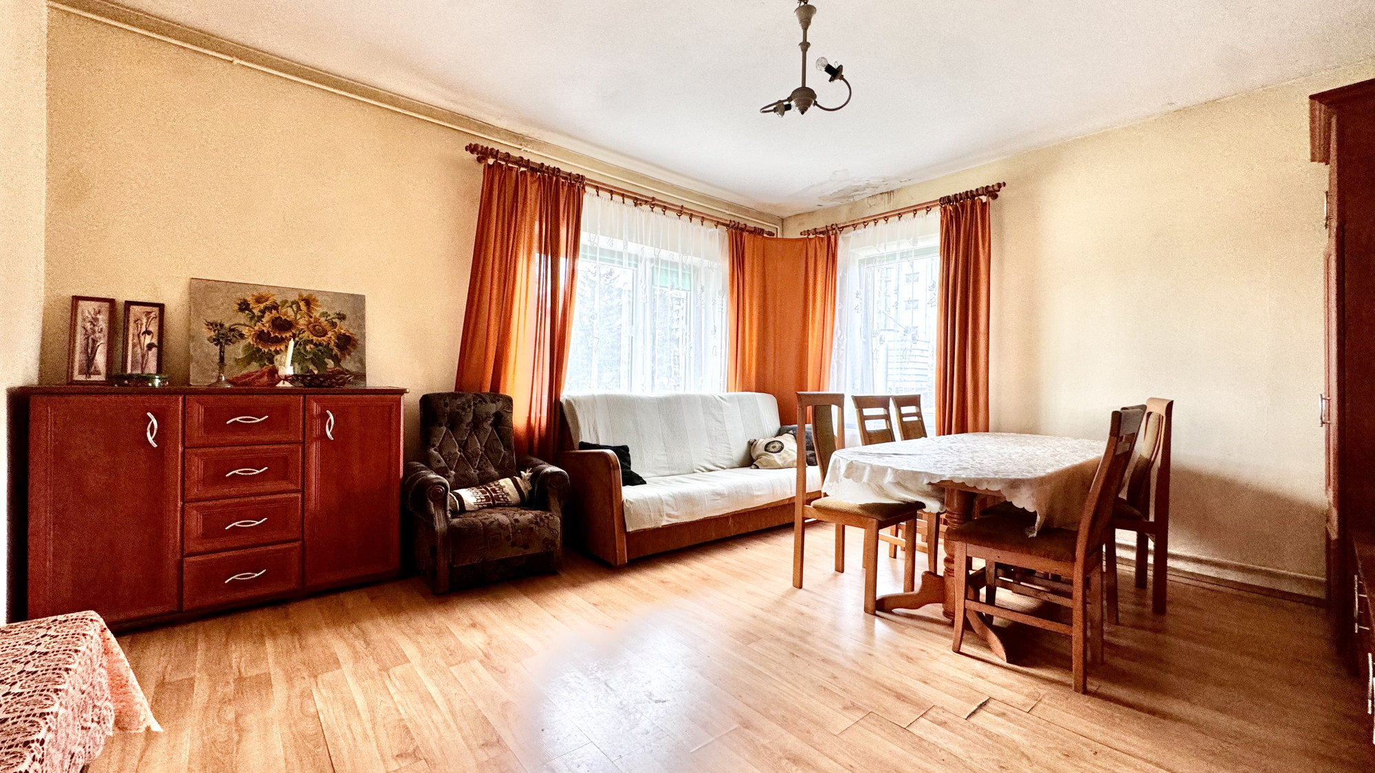 W mieszkaniu panuje przyjemny klimat - zimą jest ciepło a duża ilość naturalnego światła sprawia, że wnętrza są jasne i przytulne. Lokal posiada centralne ogrzewanie węglowe. Elektryka w miedzi, wymienione zostały okna. Dostępne wszystkie media: woda, prąd, kanalizacja. Stan techniczny dobry natomiast dla pełnego komfortu wymagałoby drobnych prac remontowych lub odświeżenia.