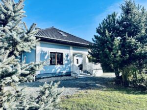 Ślężańskie biuro Powierska Nieruchomości mieszczące się w Sobótce przy ulicy Rynek 9 prezentuje na sprzedaż wyjątkowy dom jednorodzinny parterowy o powierzchni 148,30 m², położony na działce 2800 m² w miejscowości Tworzyjanów koło Sobótki z pięknym widokiem na Magiczną Górę Ślęża.