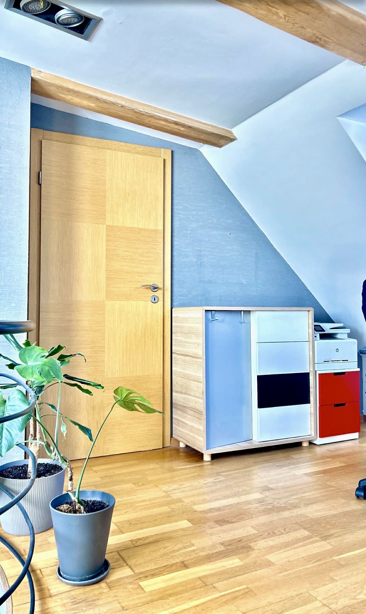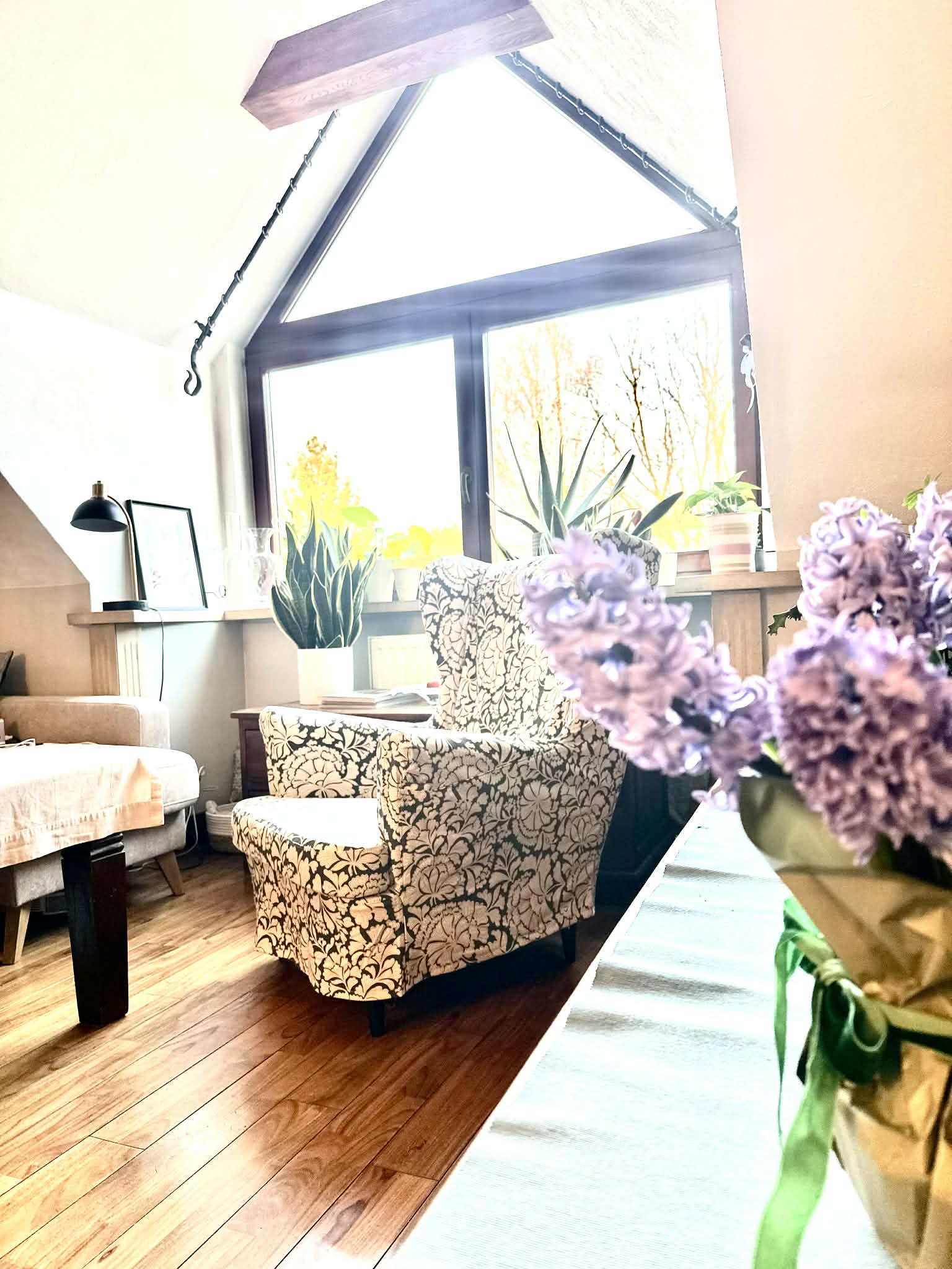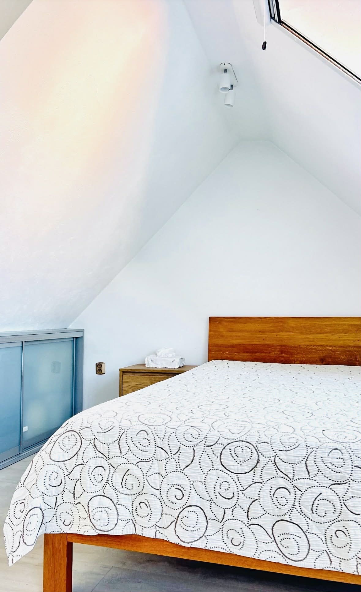 • całkowita powierzchnia mieszkania liczona po podłodze wynosi 85 m2, po odjęciu przestrzeni pod skosami pow. użytkowa to 64,32 m2