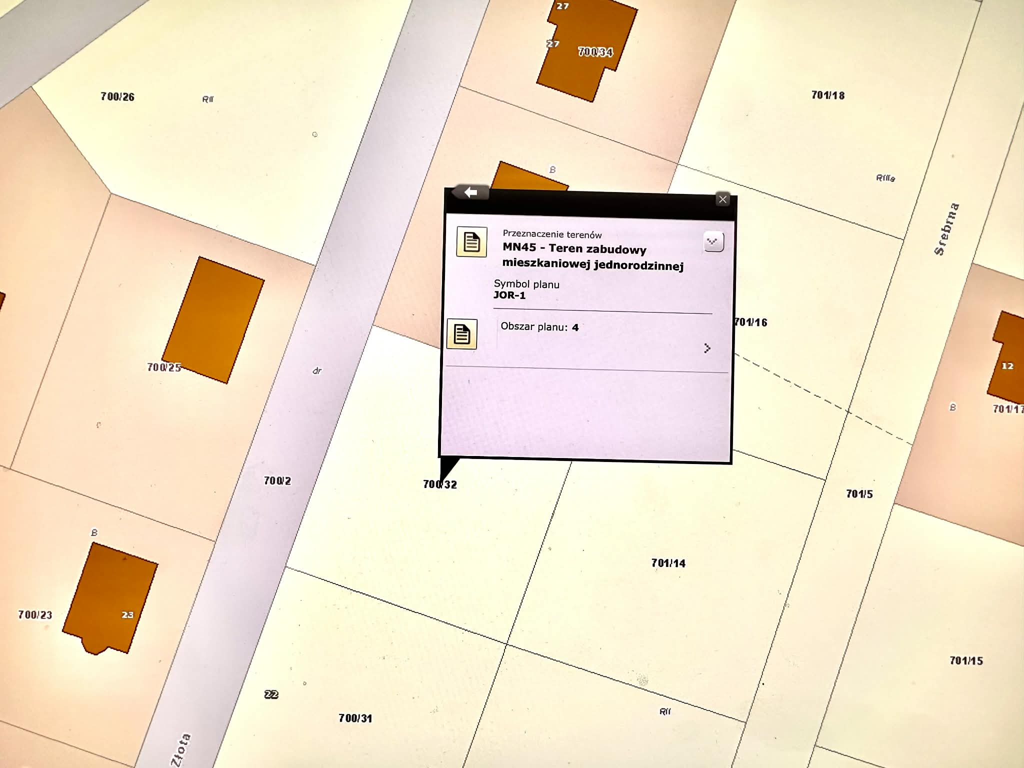 Według MPZP działka przeznaczona pod teren zabudowy mieszkaniowej jednorodzinnej o symbolu MN45