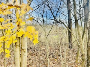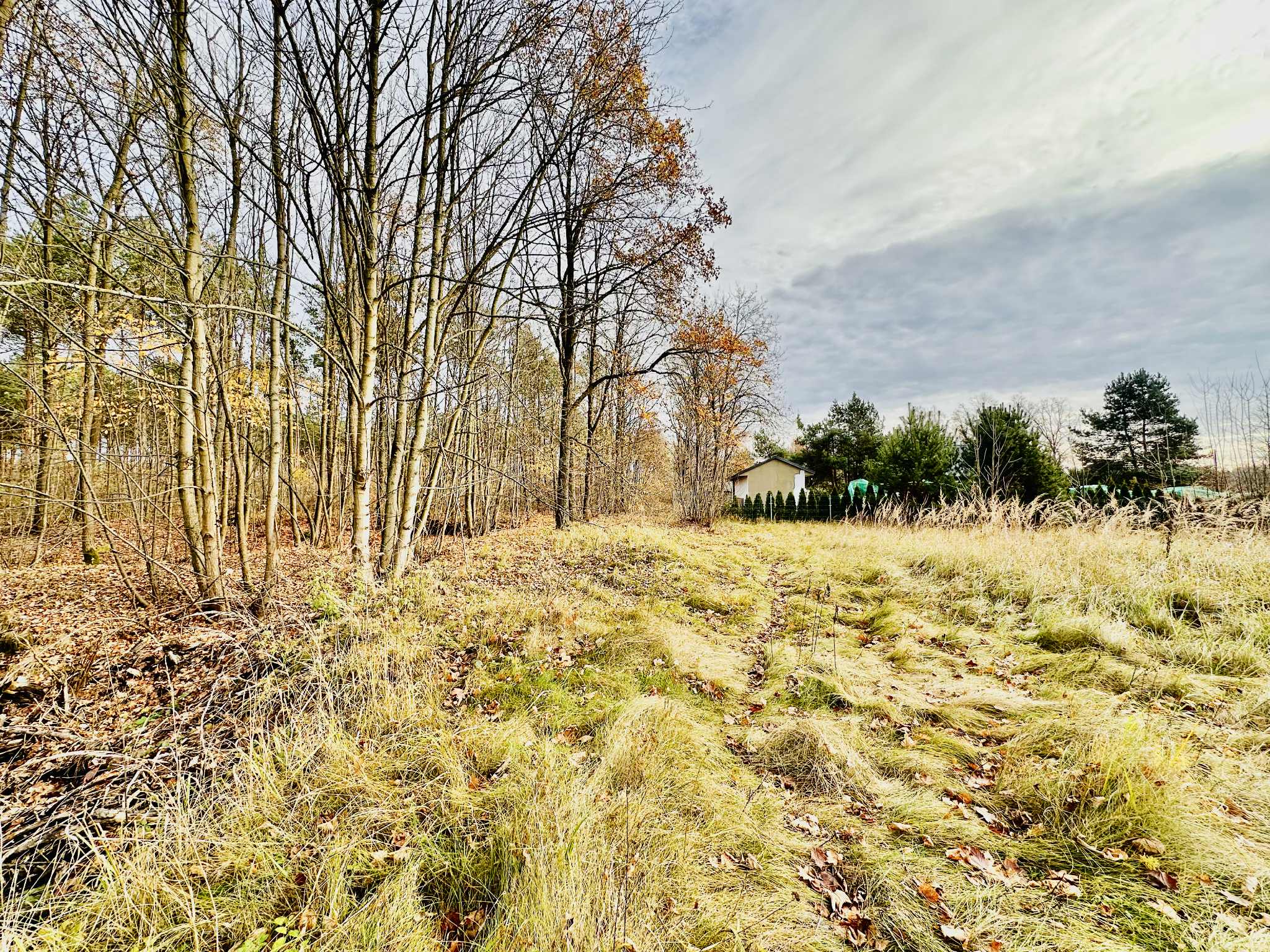 Malownicza okolica, otoczona zielenią, działka częściowo zalesiona.