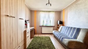 - duży, przytulny salon z bezpośrednim wyjściem na ogród — idealny na rodzinne spotkania i odpoczynek.